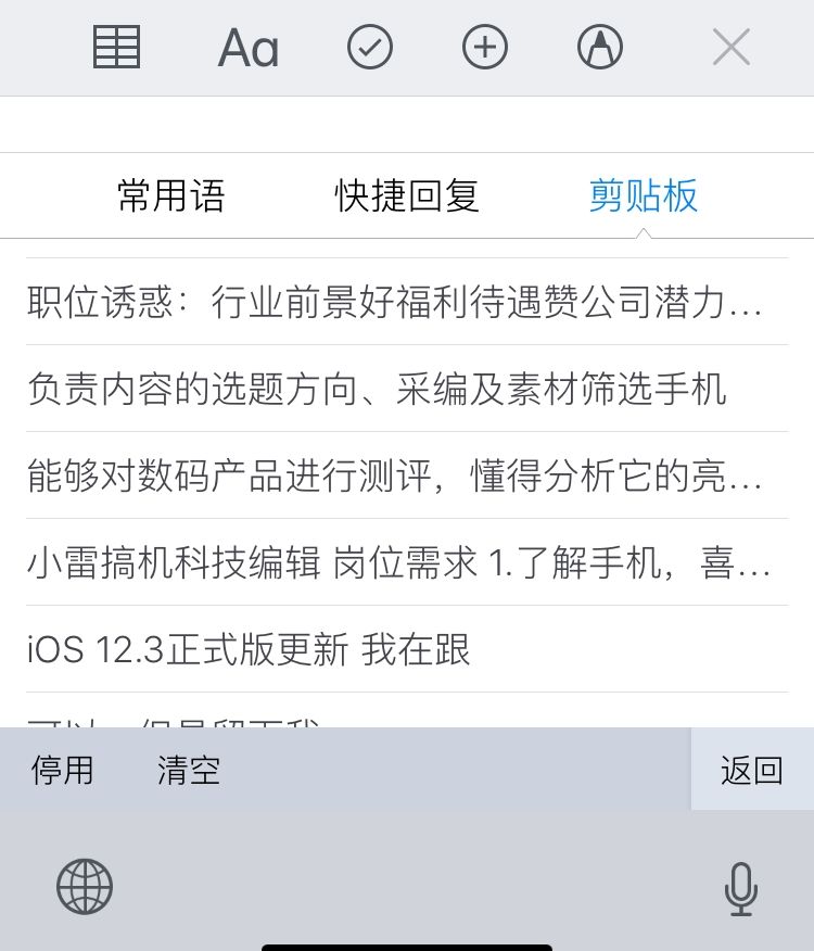 讯飞有一个功能是绝对的刚需——「剪贴板」。可以找回之前复制过的消息。