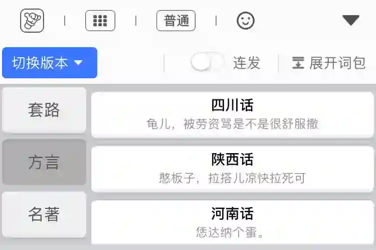 除了小雷刚才展示的游戏怼人词库,还有方言版的呢……