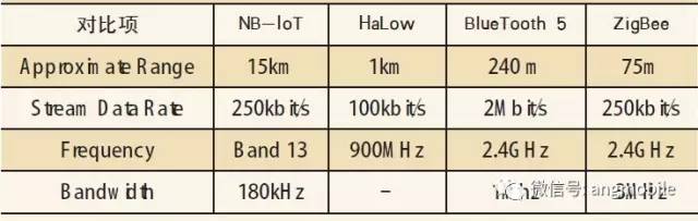 (4)HaLow即802.11a h技术,是适应于物联网领域的Wi-Fi新标准,运行于900MHz,低功耗实现更广范围的设备连接。根据IEEE文档,HaLow要实现1km距离以上的大于100kbit/s数据传输。以上几种关键物联网技术对比见表1。