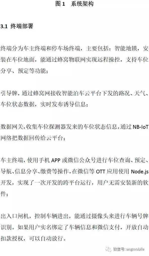 技术层面上,华南理工大学邓广森设计了一种依赖于深度学习算法的智慧停车场系统,解决停车场双向引导问题;吉林大学冯璐璐提出基于泊位选择的物联网泊车诱导路径优化技术,提高停车成功率。随着当前Pre 5G应用逐渐浮出水面,可以在当前LTE设备,甚至于老旧蜂窝网络设备上实现平滑演进、低成本升级部署的窄带物联网技术(Narrow Band Internet of Things,NB-IoT),展现出了强大的万物互联能力。NB-IoT在仅180kHz的带宽上,表现出了低时延、海量连接和超低功耗的优势。