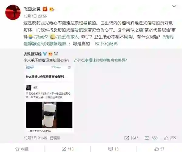 对此,毕业于中国科学院的果壳网科普作者、知名科学科普博主@飞雪之灵也表示,卫生纸内的植物纤维是光信号的良好反射体,而软件将反射的光信号的涨落拟合为心率。