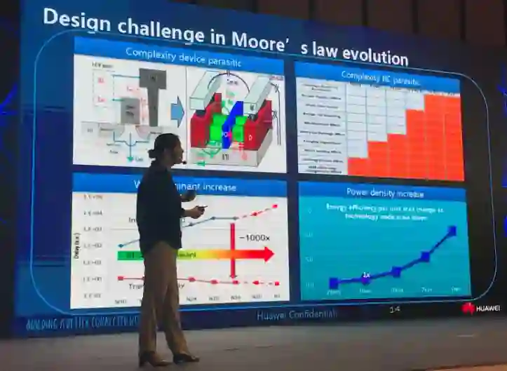 不过,无论是传统芯片厂商还是科技巨头想要研发出算力更高、功耗更低的AI芯片就不得不面对摩尔定律放缓的问题。从国内芯片的龙头华为海思来看,华为海思平台与关键技术开发部部长夏禹在CDNLive 2018大会的演讲中指出,过去海思一直紧跟摩尔定律,按工艺节奏复合演进,为云端和终端设备提供更多的算力、更宽的带宽和更低的功耗,如今摩尔定律从某种程度看只是一个抵抗通货膨胀的工具,芯片设计的挑战也日益严峻。随着不同终端的流行和需求的增加,工艺制程的演进使芯片设计人员面对前所未见的的设计、验证和仿真问题。特别是模拟电路方面EDA厂商的提升落后于逻辑器件,这给现在的芯片设计带来了明显的影响。