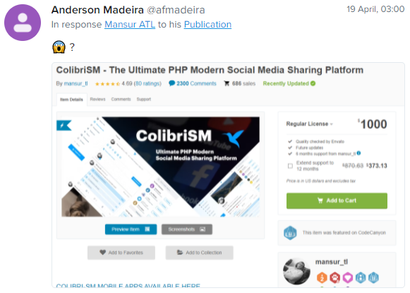 对于这些意见,Mansur 表示:“我已经把我的 Envato 账户设置为非独家销售,所以目前我可以在 Envato 平台外出售。”
