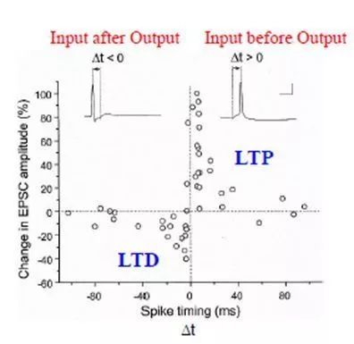 由于SNN存在大量的微分方程计算并依赖于计算机仿真,SNN中的数值基本是通过数值方法计算的微分方程的状态。因此,具体的仿真过程中,与传统神经网络的最大区别在于时间步的概念,与硬件中的时钟十分相似。所以突触模型中还可以带有一个熟悉就是延迟(delay),可以和权重一样被训练成为表达输入特征的一个重要参数。目前SNN的学习算法很多基于脉冲的间隔的精确时间而不是一段时间的脉冲的数量来调整网络参数,如根据hebbian规则演变而来的STDP(Spike time dependance plasicity)。