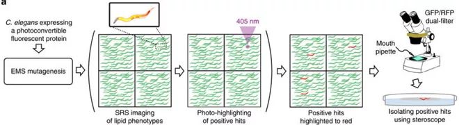 光标记和SRS成像技术筛选突变线虫(图片来源:文献)