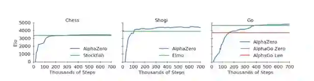 随着训练的继续深入,我们可以看到它面对Stockfish保持不败。而且最终比之前的AlphaGo Zero也更为强大。