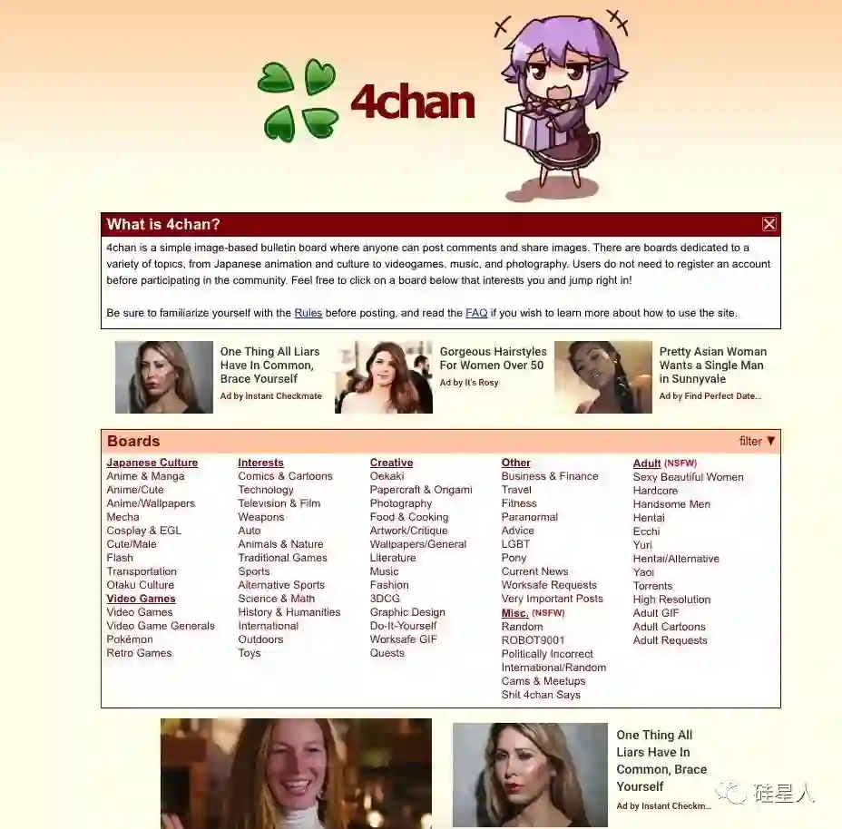 为了帮助你更好理解这个网站,目前的 4chan 基本上是一个英文版的 S1+铁血+天涯+草榴……