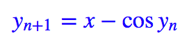 然而数学家告诉我们,这个东西的反函数是一个超越函数,也就是不可能用初等函数有限地表示出来。那这样不就是故意刁难么?不要紧,我们有迭代: