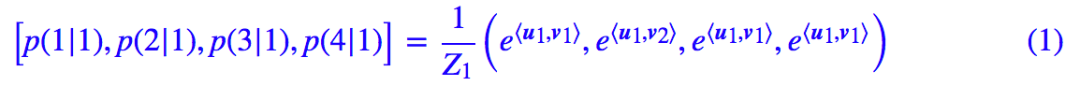 不过,单靠这个特征还不够,我们还需要综合各个特征,于是可以把上述操作对各个 ui 都做一遍,继而得到 [p(1|2),p(2|2),p(3|2),p(4|2)]、[p(1|3),p(2|3),p(3|3),p(4|3)]...