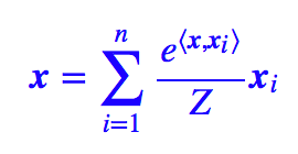一开始,我们一无所知,所以只好取 x 为各个 xi 的均值,然后代入右边就可以算出一个 x,再把它代入右边,反复迭代就行,一般迭代有限次就可以收敛,于是就可以将这个迭代过程嵌入到神经网络中了。