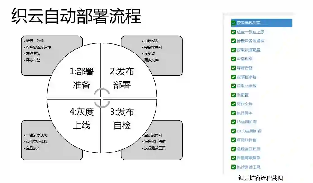 发布部署,申请权限、安装程序包、发配置、同步文件。