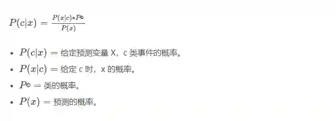朴素贝叶斯(Naive Bayes)是基于贝叶斯定理。它测量每个类的概率,每个类的条件概率给出 x 的值。这个算法用于分类问题,得到一个二进制“是 / 非”的结果。看看下面的方程式。