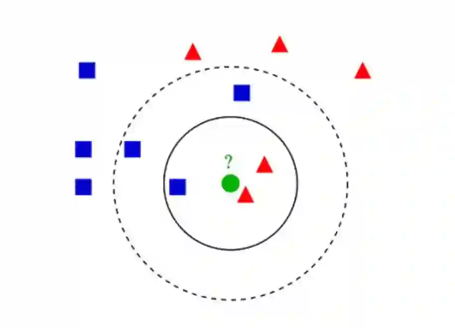 K- 最近邻算法(K-Nearest Neighbors,KNN)非常简单。KNN 通过在整个训练集中搜索 K 个最相似的实例,即 K 个邻居,并为所有这些 K 个实例分配一个公共输出变量,来对对象进行分类。