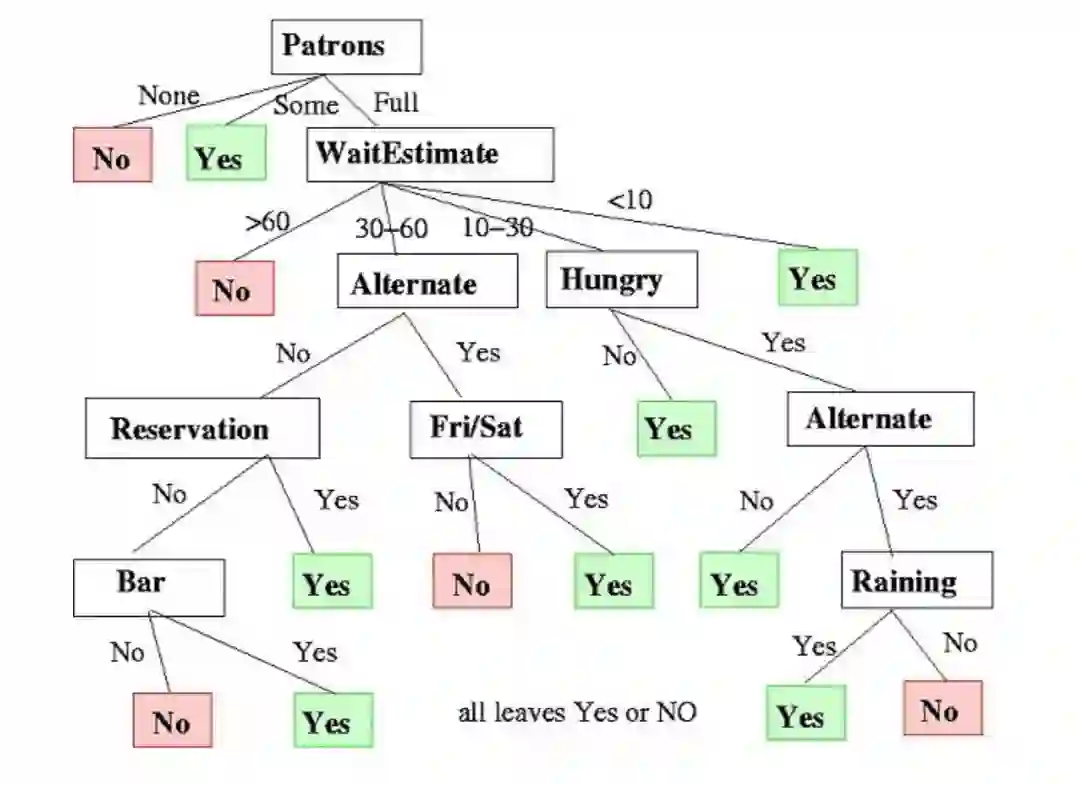 决定是否在餐厅等候的决策树示例。