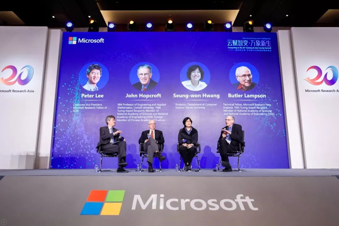 在开场的圆桌论坛中,微软全球资深副总裁Peter Lee主持了一场“计算机科学人才培养”的讨论,图灵奖得主、康奈尔大学计算机科学系教授John Hopcroft,图灵奖得主、微软新英格兰研究院技术院士Butler Lampson,以及延世大学计算机科学系教授Seung-won Hwang分享了各自成长中的故事,为同学们的求学与职业生涯给出了建议。