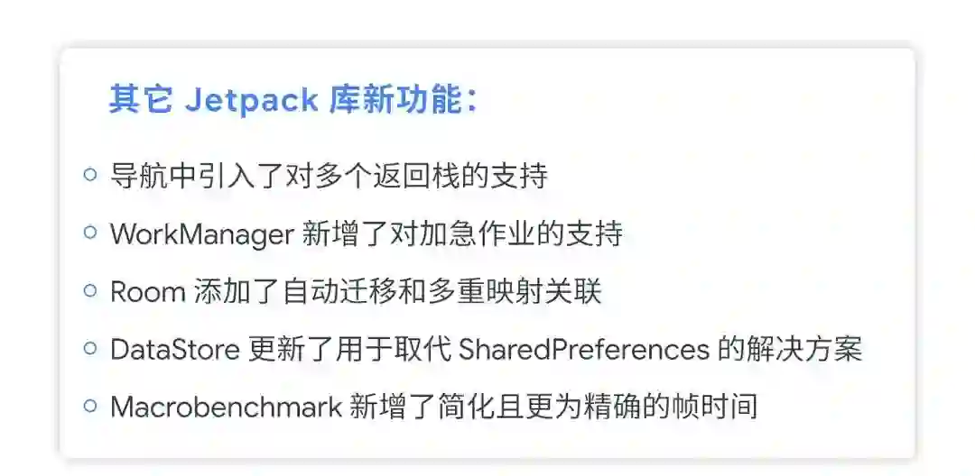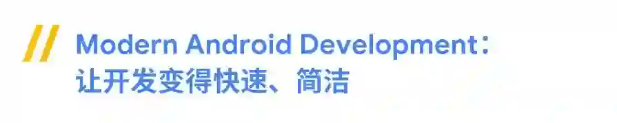 新发布的 Modern Android Development (MAD) ,个性鲜明且功能强大,包含了全新的 Jetpack 库,Android Studio 中的检查器以及 Kotlin,能有效帮助开发变得快速而简洁,让开发者轻松打造能够在数十亿设备上运行的优质应用。