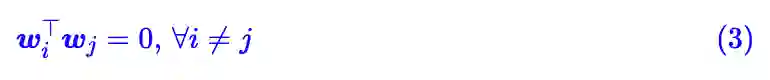既然有 k 个视角,那么为了减少视角的冗余(更充分的利用所有视角的参数),我们自然是希望各个视角互不相关(举个极端的例子,如果有两个视角一模一样的话,那这两个视角取其一即可)。而对于线性空间中的向量来说,不相关其实就意味着正交,所以我们希望: