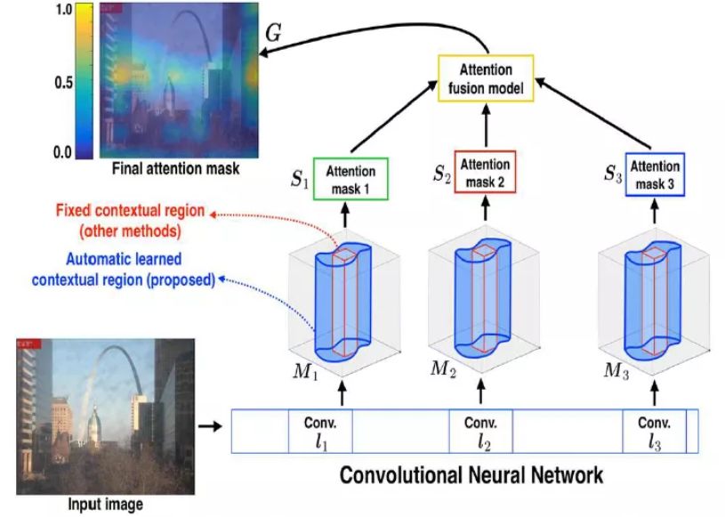 第二篇文章提出了一种新型的注重图像语境的灵活注意机制。作者引入了一个多尺度,语境灵活的网络,用来估计特征地图中每个空间区域的重要性。该网络使用端到端的训练模型进行位置识别,能够检测任意形状的感兴趣区域。
