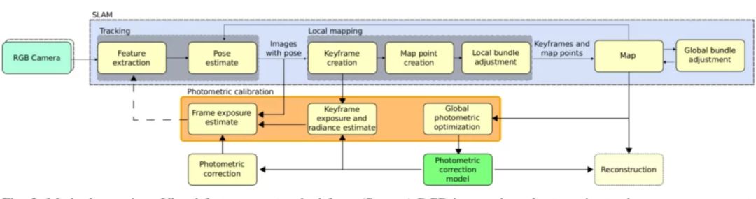 第三篇文章基于相机在移动,照明是静态的,反射属于朗伯反射的假设条件下,提出了一种在不需要均匀照明表面、已知纹理以及特定几何形状等信息的前提下,实现实时在线的光晕和响应校准。