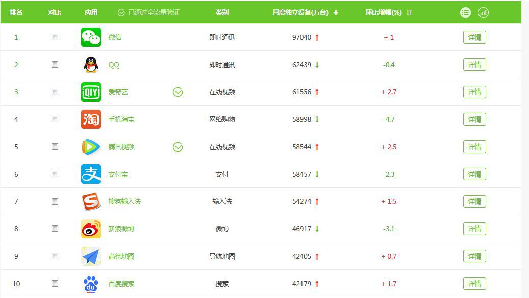 在艾瑞数据发布的2018年1月份移动App排行榜前10位中,有百度旗下的爱奇艺与百度搜索,有腾讯旗下的微信、QQ、腾讯视频与搜狗输入法,阿里巴巴也有手机淘宝、支付宝、新浪微博与高德地图四款产品入选,而360公司无一款产品,在前20位中,奇虎360也只有一款360手机安全卫士入选。
