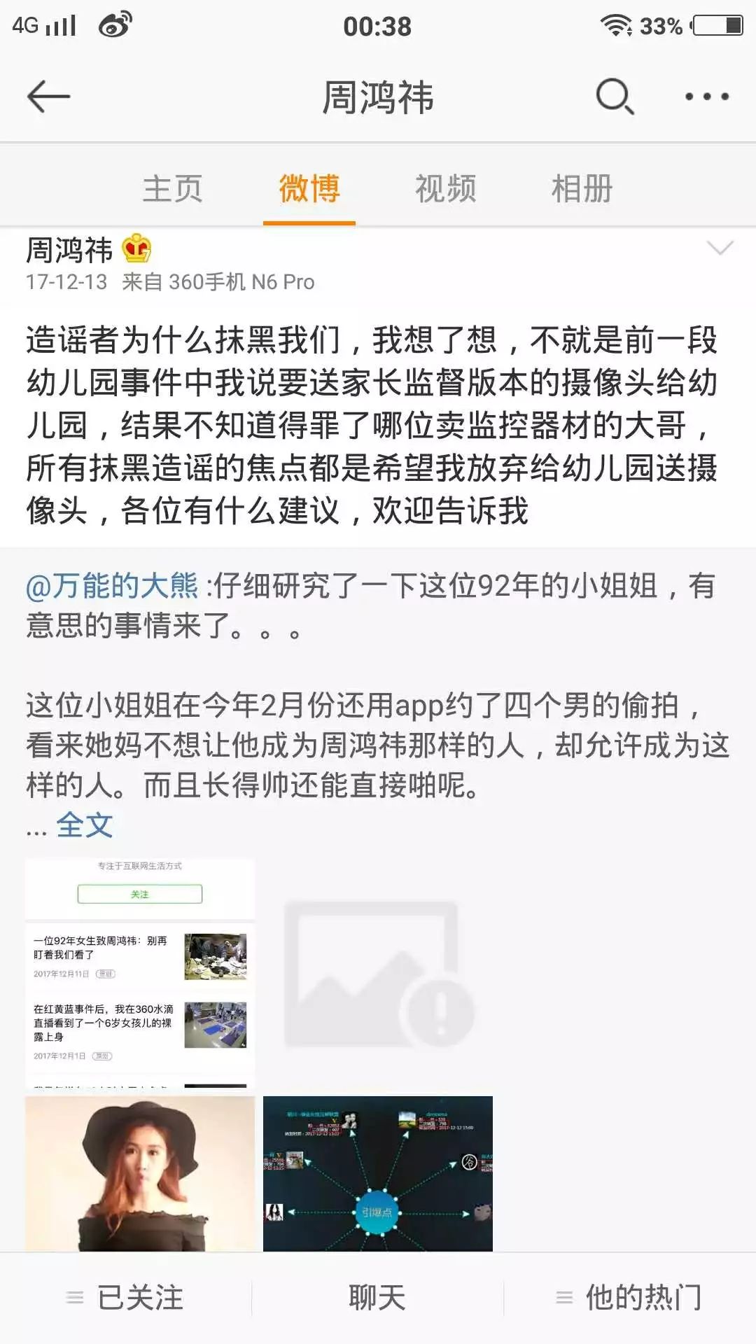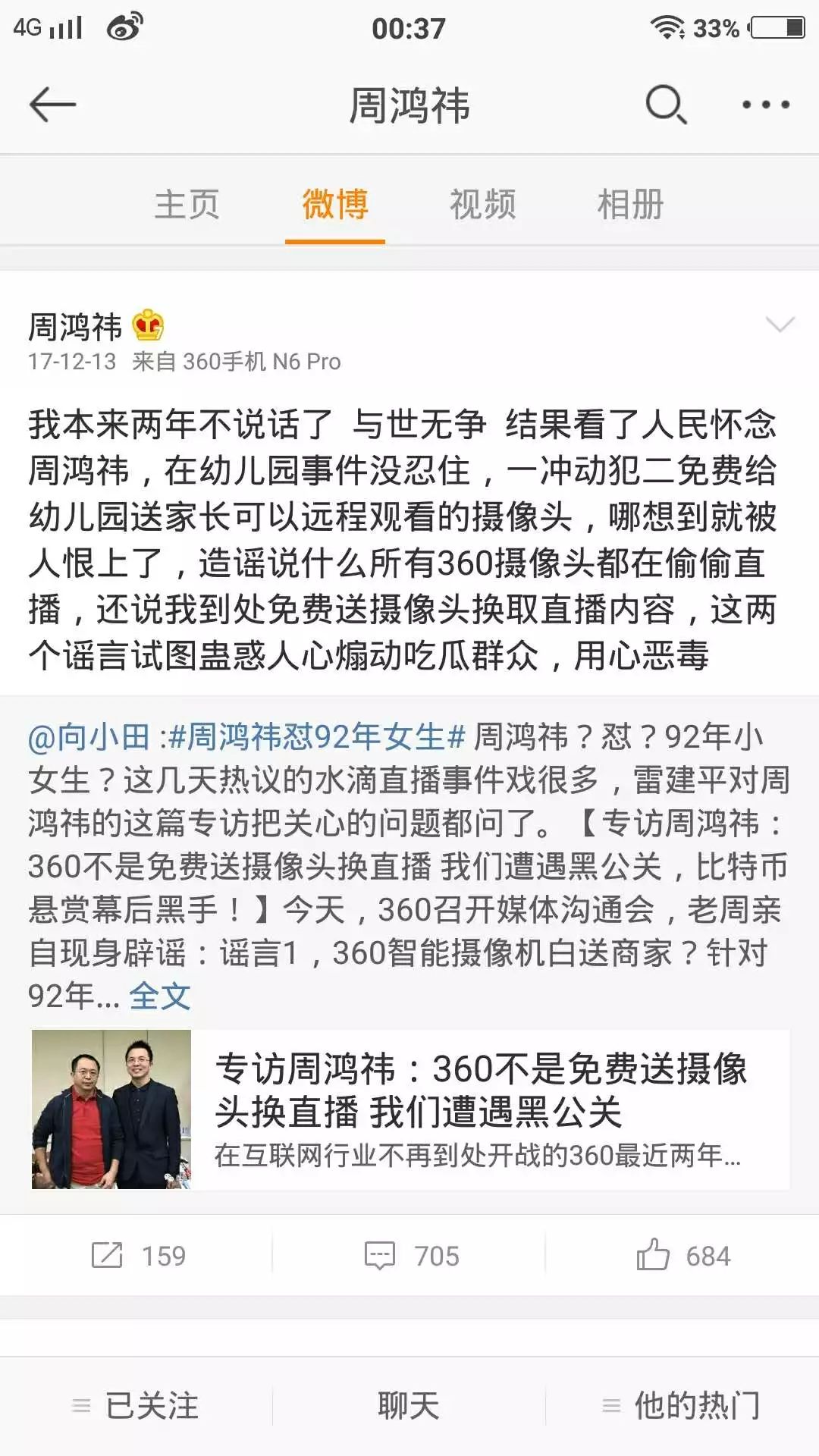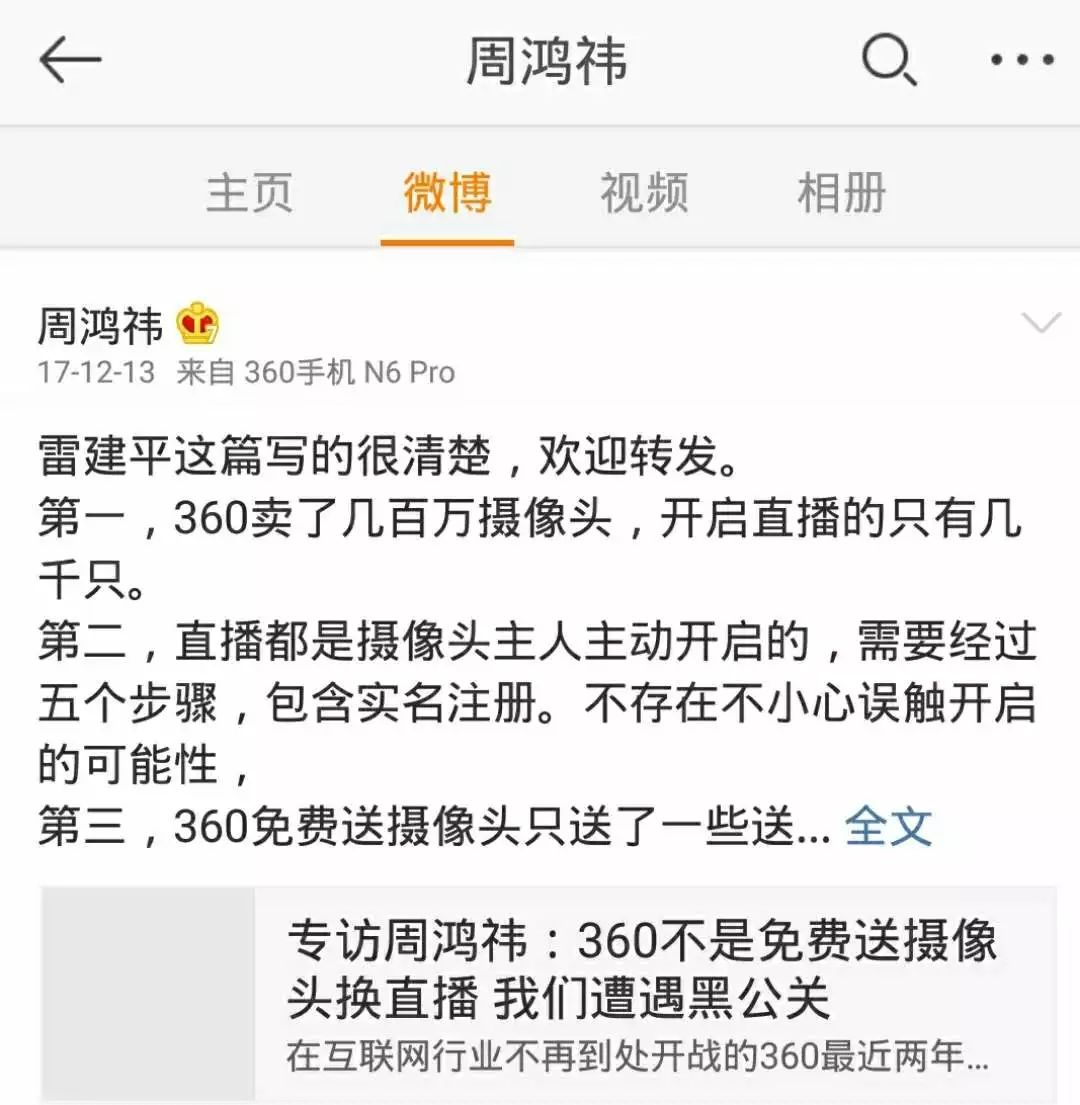 2017年底,一位92后姑娘发表了一篇《一位92年女生致周鸿祎:别再盯着我们看了》的文章,质疑360旗下的水滴直播侵犯公众隐私。您不仅不承认错误,还大张旗鼓的组织了一场众多知名自媒体人参加的发布会,并炮制大量负面文章对这位92后小姑娘群起攻之,并污蔑其为“黑公关”。