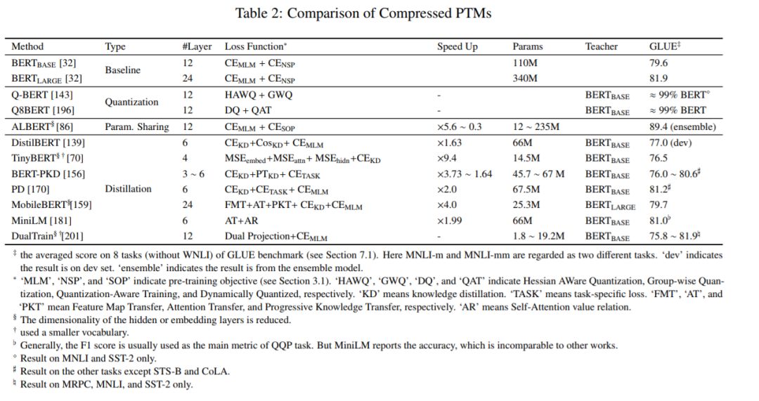 此外,我们可以通过使用模型压缩等技术,用通用的现有PTM来教他们,而不是从头开始训练面向任务的ptm(参见4.3节)。虽然在CV[17]中,针对CNNs的模型压缩已经得到了广泛的研究,但针对NLP的PTMs的模型压缩才刚刚开始。Transformer 的全连接结构也使模型压缩更具挑战性。