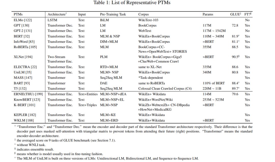 1. 全面调研。我们为NLP提供了PTMs的全面回顾,包括背景知识、模型架构、预训练任务、各种扩展、适应方法和应用。给出了典型模型的详细描述,进行了必要的比较,总结了相应的算法。