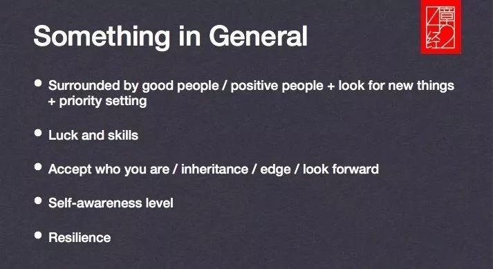 还有一个就是掌握心情。VC 这一行,判断错的时候多,对的时候少,再加上 peer 的比较,大家其实会越来越焦虑。所以如何管理自己的心情也比较重要。