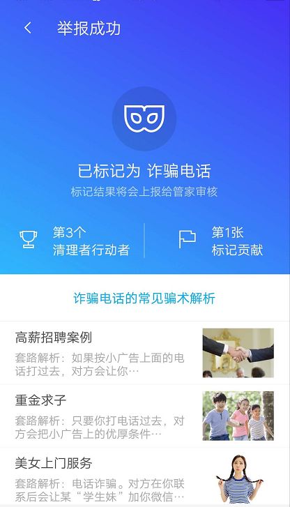 ④标记成功后,提供相应骗术解析,帮助用户更好的了解该诈骗手法。