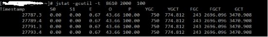 jstat 命令可打印 GC 详细信息,Young GC 和 Full GC 次数,堆信息等。其命令格式为