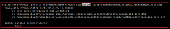 如图 5 所示,其中的线程 24985 运行时间较长,可能存在问题,转成 16 进制后,通过 Java 线程栈找到对应线程 0x6199 的栈如下,从而定位问题点,如图 6 所示。