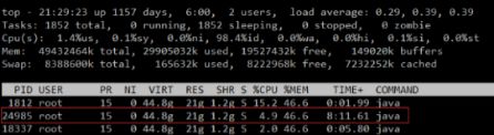 通过 top 命令可以查看进程使用的虚拟内存 VIRT 和物理内存 RES,根据公式 VIRT = SWAP + RES 可以推算出具体应用使用的交换分区(Swap)情况,使用交换分区过大会影响 Java 应用性能,可以将 swappiness 值调到尽可能小。