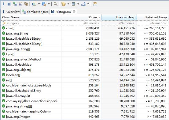 jmap 打印 Java 进程堆信息 jmap –heap pid。通过 jmap –dump:file=xxx pid 可 dump 堆到文件,然后通过其它工具进一步分析其堆使用情况