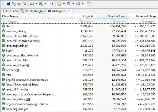 图 9 是 MAT 使用示例,MAT 有两列显示对象大小,分别是 Shallow size 和 Retained size,前者表示对象本身占用内存的大小,不包含其引用的对象,后者是对象自己及其直接或间接引用的对象的 Shallow size 之和,即该对象被回收后 GC 释放的内存大小,一般说来关注后者大小即可。
