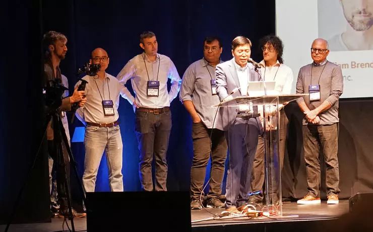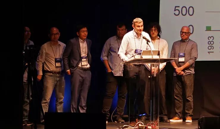 Brain Moore 颁发的第一个 PAMI 奖项是纪念 CVPR 2009 最具深远影响的论文的 PAMI Longuet-Higgins 奖,相当于其它顶会近几年开始颁发的「时间检验奖」(Test-of-Time Award)。获奖论文是计算机研究者们过于熟悉,以至于不太记得是在哪年 CVPR 上发表的李飞飞的 ImageNet 论文,但揭晓之后现场立刻响起了热烈且持久的掌声。李飞飞、李佳、李凯三人也上台领取了奖项证书。