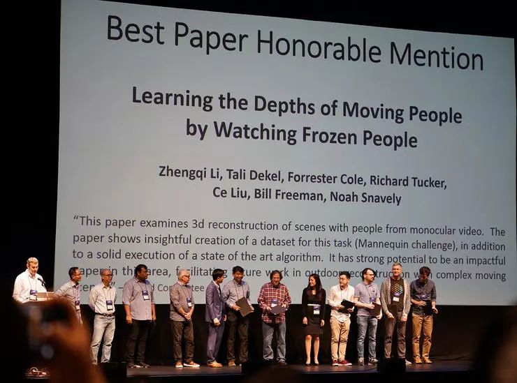 论文奖委员会的授奖理由:这篇论文尝试了从含有人的单视角视频重建场景的三维结构。论文中呈现了具有洞见的数据集创建过程(静止不动),而且对当前最优秀的算法的执行也无懈可击。这篇论文很有潜力成为这个领域内具有深远影响的论文,未来针对户外场景、复杂运动场景的三维重建研究都可以从这篇论文获益。