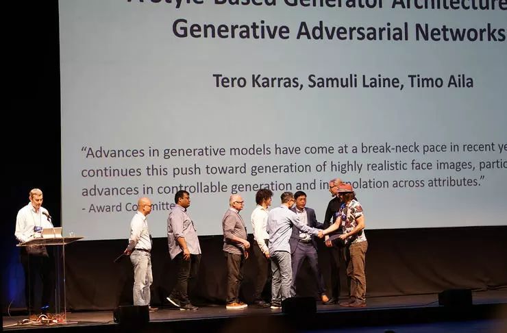 论文奖委员会的授奖理由:近几年来,生成式模型方面的技术进步来到了一个瓶颈期。这篇论文在生成高逼真度人脸这一研究方向上作出了继续的进步,尤其在生成过程的可控制性以及不同属性之间的互相搭配方面作出了改进。