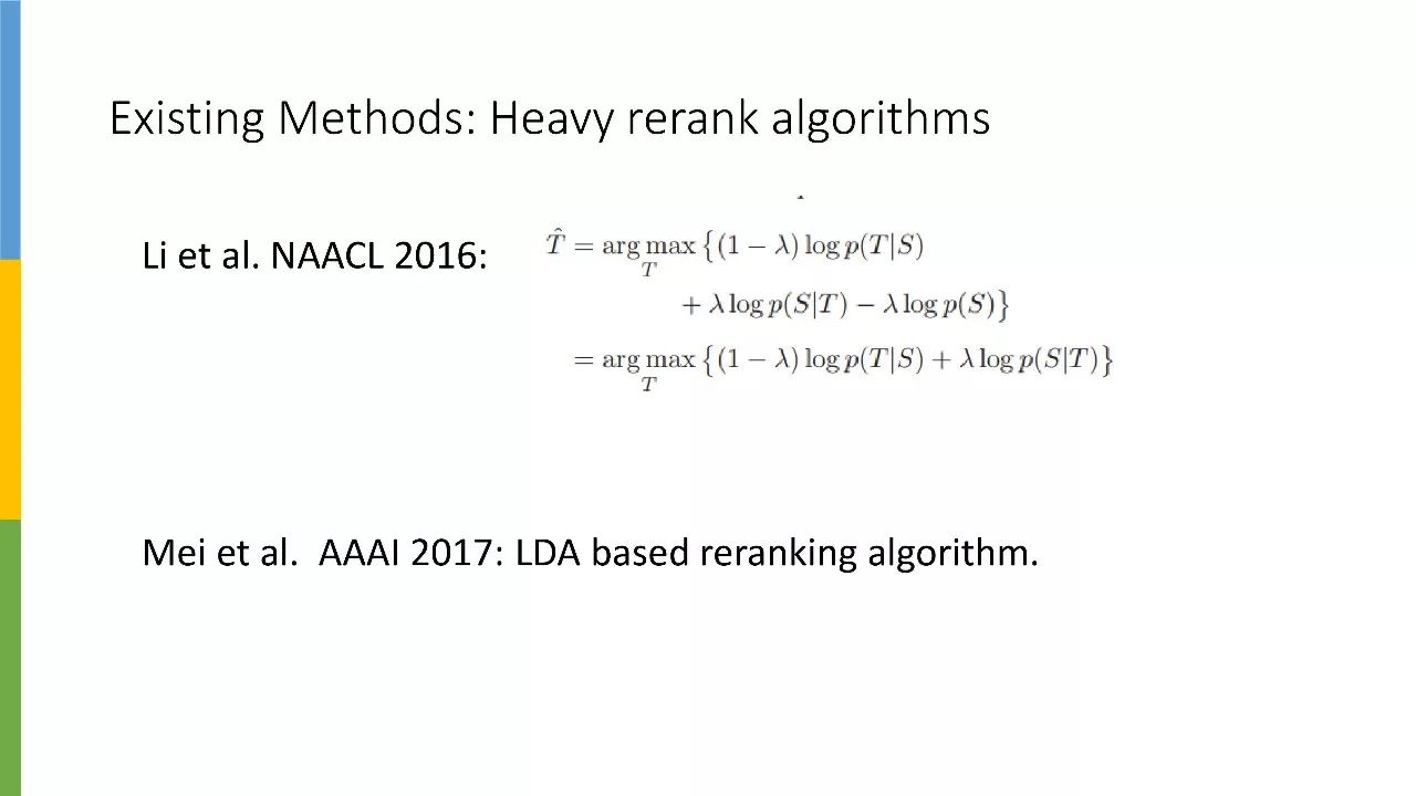 我们做这篇论文的初衷,是为了提出一种不借助繁重工具或算法的回复生成方法。因为无论是复杂模型、后排序、增强学习还是 GAN,都属于一种用时间换精度的方法。