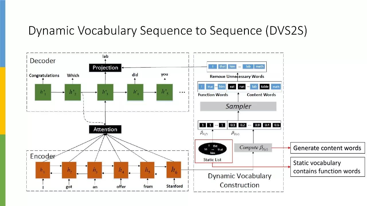 随后,他还以第一作者的身份,解读了北京航空航天大学和微软亚洲研究院于 AAAI 2018 发表的工作 Neural Response Generation with Dynamic Vocabularies。