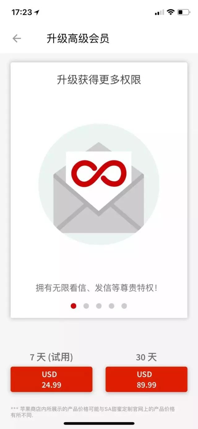常识告诉我们,在约会软件中,用户付费意愿是最强的。中文版本中,会员费用一个星期的试用是163块,一个月要499块,而在英文地区,月费则是89.99美元。