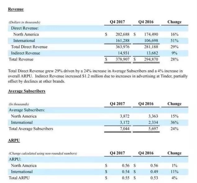 这几年在中国也流行一款美国的约会软件——OkCupid,我翻开它的母公司Match集团财报,在跨地区收入和用户这一项,证明了我的想法: