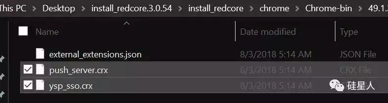 更诡异的是,下图可以看到,这个安装包里自带了两个兼容 Chrome 的插件(.crx 是 Chrome 插件的扩展格式):