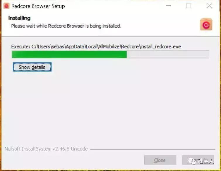 又解出来了另一个同名但是没有版本号的可执行文件:install_redcore.exe (比前一个文件少了版本号)。
