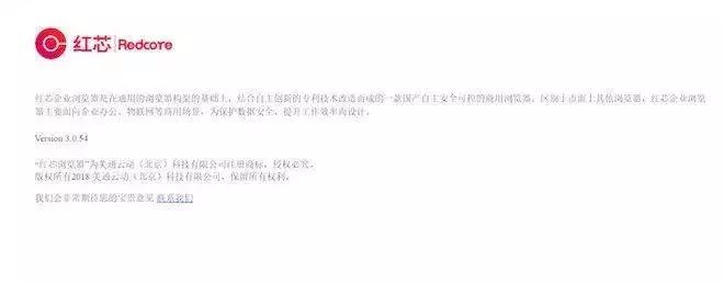 About 页面显示,红芯浏览器是“在通用的浏览器构架的基础上,结合自主创新的专利技术改造而成的”。而区别于其他浏览器,红芯主要面向企业办公、物联网之类的商用场景。