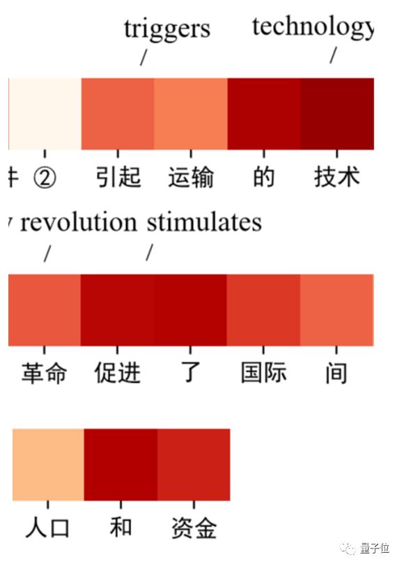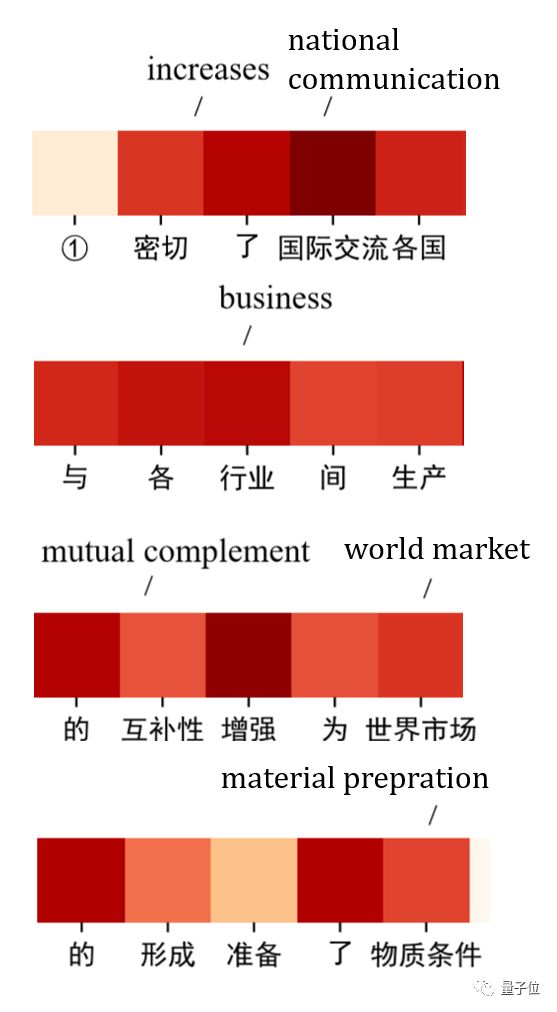 标点符号都被去掉了,而所有的词汇都被拆分成了一个一个的标签用不同深度的红色表示。