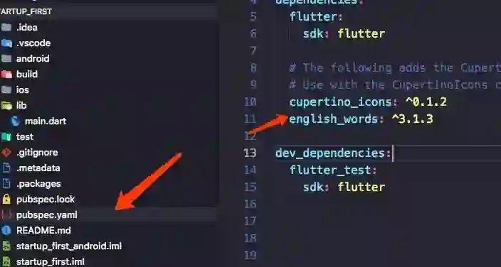 将english_words添加到pubspec.yaml文件中(pubspec文件
