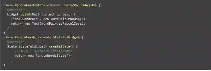 扩展(继承)RandomWordsState类,以生成并显示单词对列表。 当用户滚动时,ListView中显示的列表将无限增长