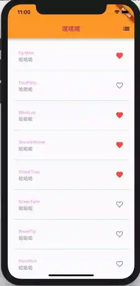 在 _buildRow中让心形❤️图标变得可以点击。如果单词条目已经添加到收藏夹中, 再次点击它将其从收藏夹中删除。当心形❤️图标被点击时,函数调用setState()通知框架状态已经改变。