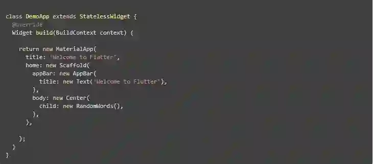 替换 lib/main.dart. 删除lib / main.dart中的所有代码,然后替换为下面的代码,它将在屏幕的中心显示“Hello World”