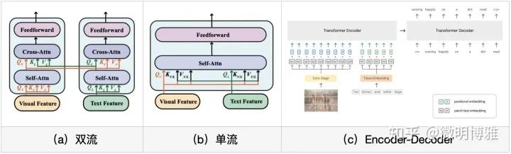 另一方面,多模态预训练最近也在不断兴起,视觉语言预训练(VLP)旨在将视觉和语言特征对齐,学习更好的联合嵌入表示。VLP主要可以分为双流和单流:双流模型通常有两个Encoder将视觉和语言分开编码,在晚期进行交互,如LXMERT;单流模型通常将视觉和语言送入同一个Encoder,在早期进行交互,如微软的Oscar,不过这些都类似于Bert的Mask预训练方法。另外,还有基于Encoder-Decoder的生成式预训练方法,像Google最新提出的SimVLM,其模型简单且更为通用,在6个多模态任务下都达到了惊人的sota。这些VLP模型的最主要特点就是大规模数据集,区别在于不同的pretext tasks,而且这些模型相对简单,但带来的效果却十分显著,这也许表明了:在大数据量的背景下简单架构足以学习到高质量的多模态表示。这不得不让我们思考多模态任务未来的发展方向,是否需要朝着预训练方向前进,或者使用一些预训练好的组件。